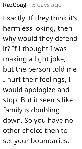 Another Reddit user agreed and said he needs to set his boundaries with his family.
