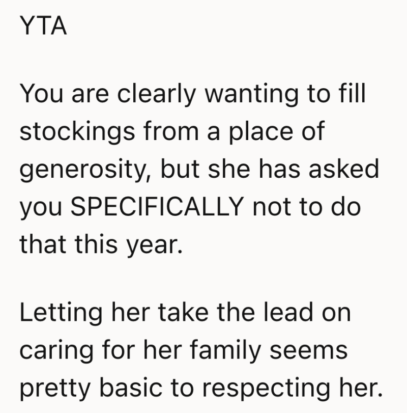 Mother-in-Law Wants to Fill Custom Christmas Stockings, But Daughter-in-Law Wants To Be The Only One To Fill Her Kids’ Stockings