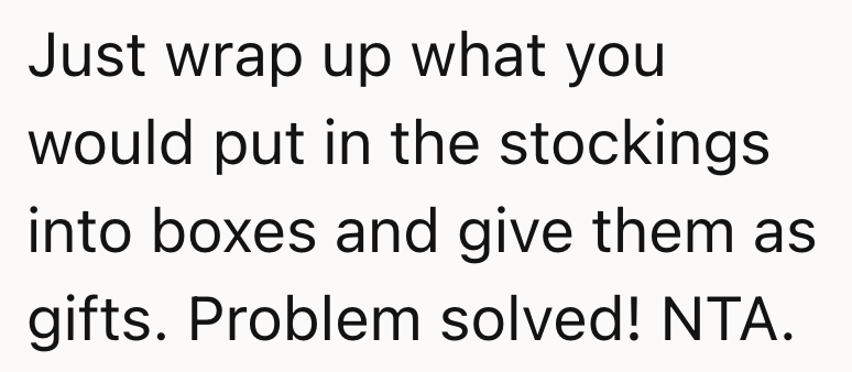 She says if I don’t go along, I’m taking something away from her but she also doesn’t see how it’s taking something away from me to not be able to do that. She said that I can fill the other stockings just nothing for those 3.