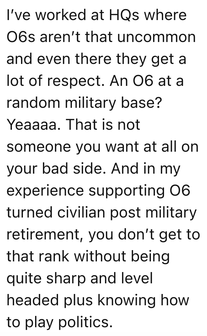 Our Chaplain was the sweetest little woman you ever met, but as a Chaplain she held the rank of Captain (high ranking officer).