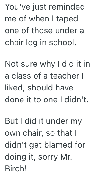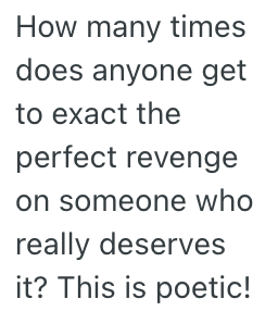She never found out it was me but seeing her embarrassment was satisfaction enough for me.”
