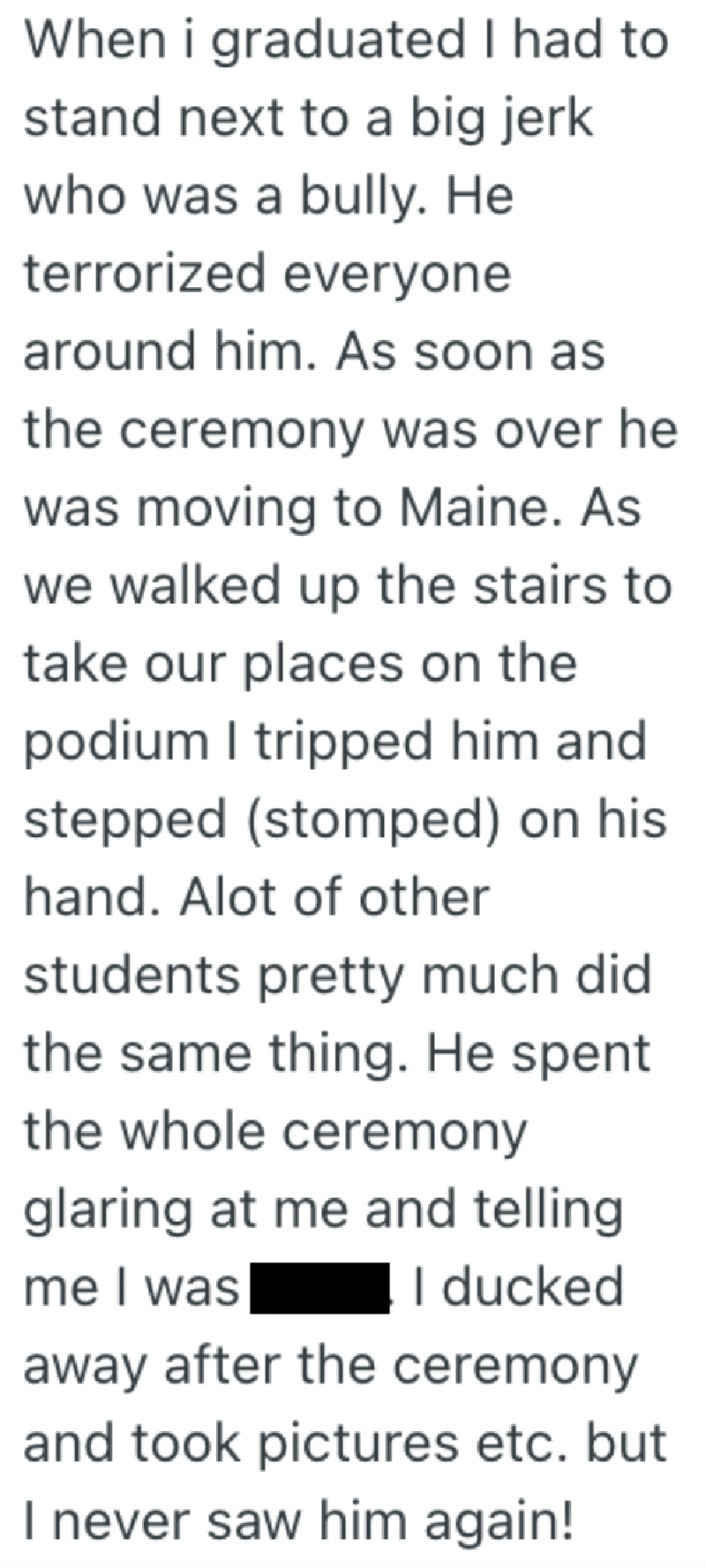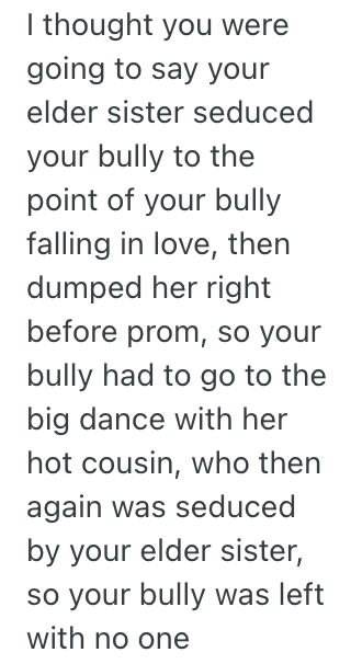 “I (23F) had a high school bully that was quite frankly relentless since we were in 7th grade.