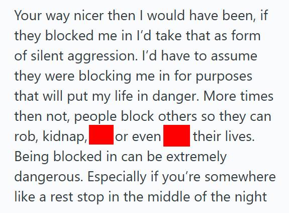 Then they followed me to my car and tried to park in a way to block me from exiting.