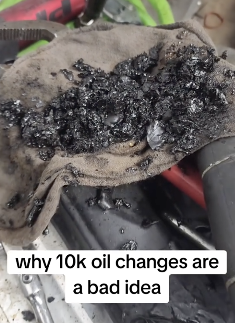 The mechanic continued, “This is the effects of following the manufacturer’s spec oil changes. I’m sure it doesn’t help that it burns oil as well, so all this oil is just burnt, caked-up oil.”