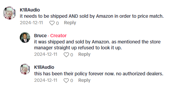 This TikToker has always shopped at Best Buy, but when he recently bought a new TV with a price match guarantee, Best Buy refused to honor the lower price that he found later, so he may never shop there again.