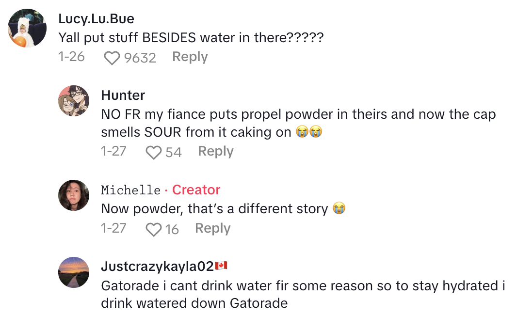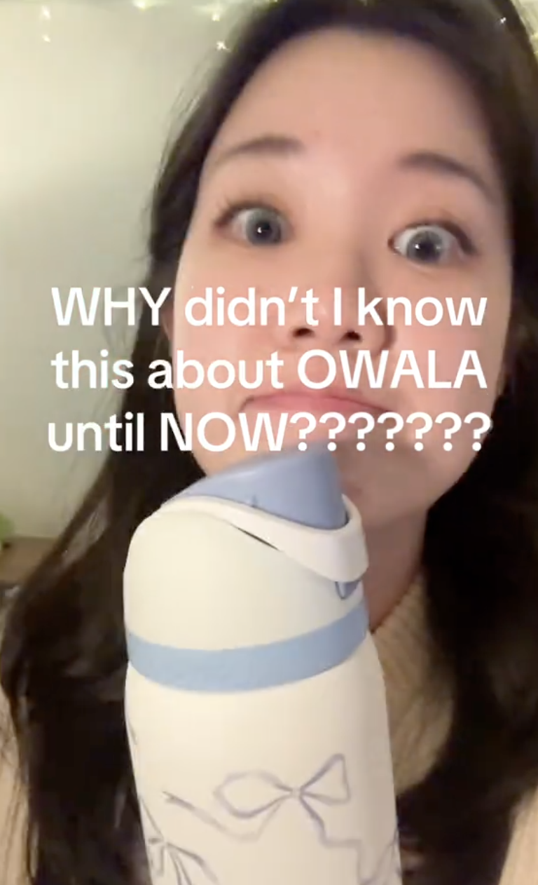 The text overlay on Michelle’s video reads, “Why didn’t I know this about Owala until now?”