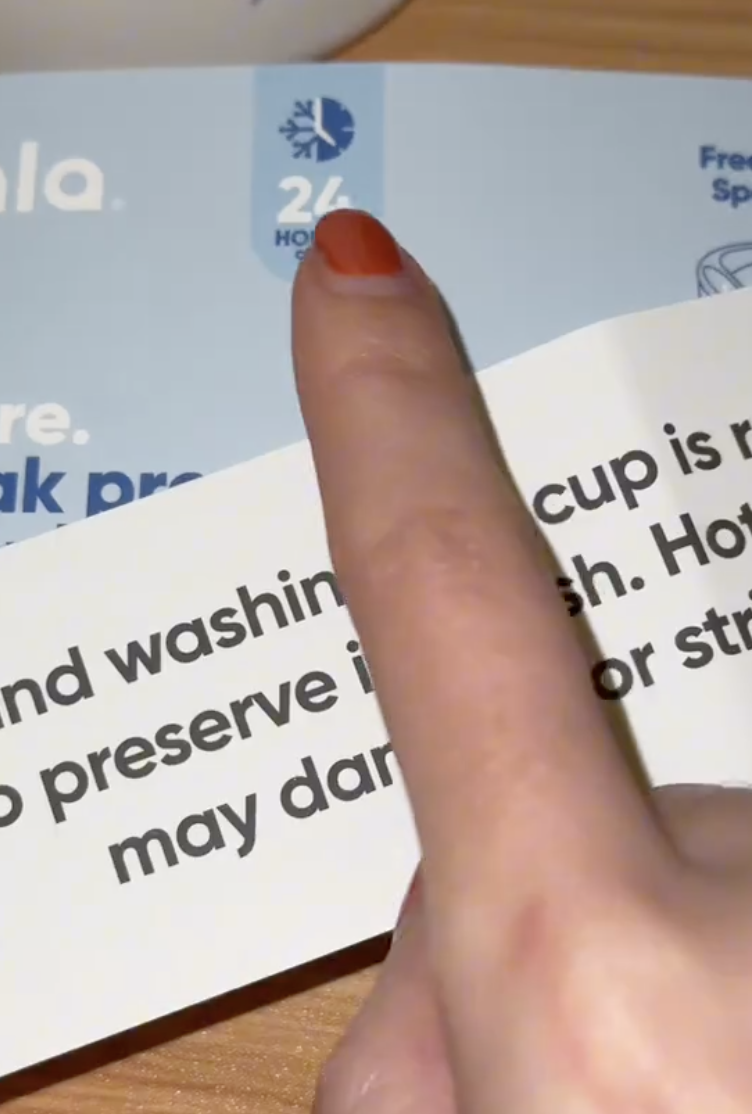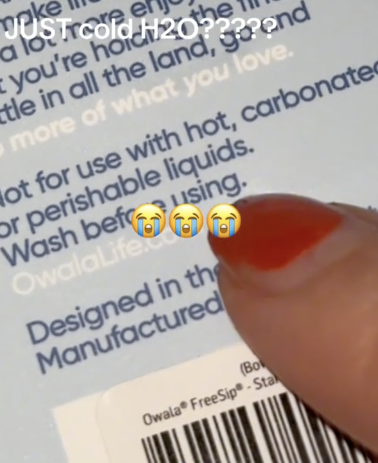 She showed viewers a piece of paper that came with the bottle that reads, “Not for use with hot, carbonated, or perishable liquids.”