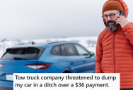 His Insurance Company Said The Full Cost Of The Tow Truck Would Be Covered, But The Tow Company Demanded $36 Extra And Began Yelling At Him To Get The Money