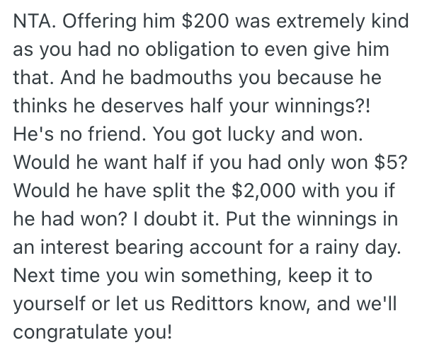 Tags: · abuse, aita, bad friend, money, picture, prize, prize money, reddit, slurs, stories, top, toxic friend, winnings