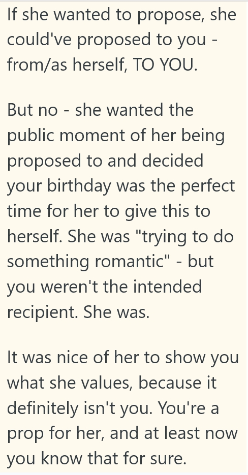 AITA for Leaving My Own Birthday Dinner Because My Girlfriend Turned It Into a Proposal for Herself?