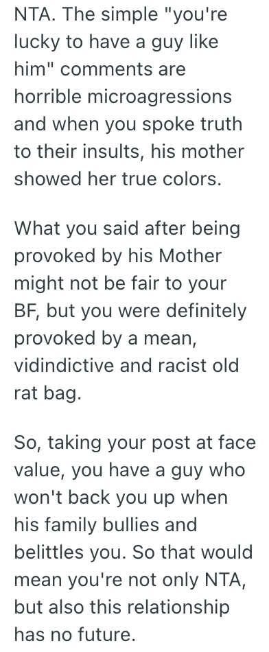 I really thought they liked me and then they started making comments like “oh you must be very happy you ended up with a guy like bf” and “you’re such a lucky girl to be dating bf”.