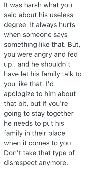 I pointed out that it’s hypocritical of him to say when his family does that to me everyday and he never stood up to them.