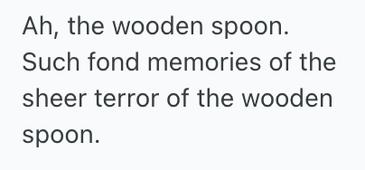 My mom flew out of that kitchen with “thee” wooden spoon.