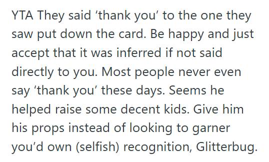On the way home, his daughter and her boyfriend made a point of thanking him directly for the meal, and he acknowledged saying something along the lines of ‘you’re welcome’ or ‘no problem.’