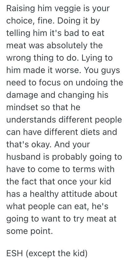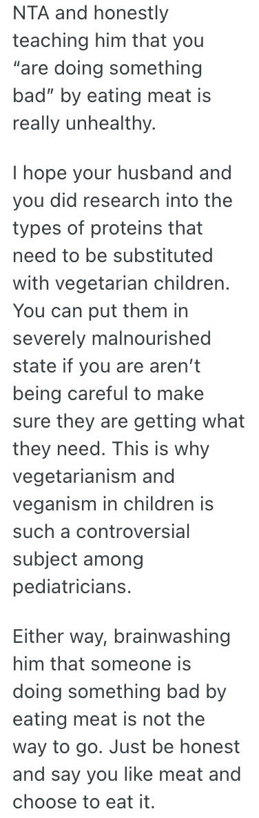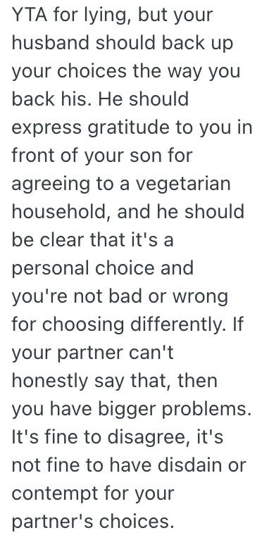 My husband was there and has told me he’s furious at me. Not because of not being vegetarian, but because I lied to our son and then tried to sneak a bit of meat at lunch time.