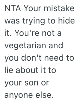 However, after telling my son I was vegetarian I still ate meat when not around him.