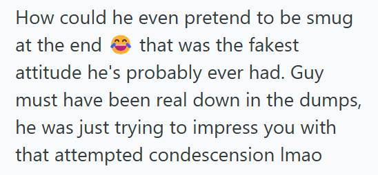 His smug smile turned to fury as I drove off, telling him to have a wonderful day.