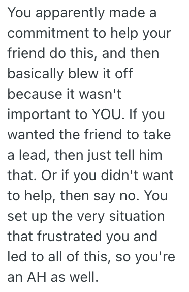 She asks my friend what he thinks of the whole thing, and my friend replies “well he’d know this better, so I’ll go with whatever he’s saying”.