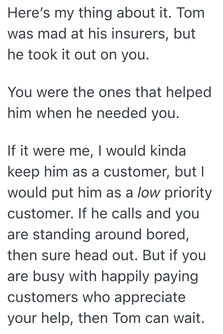 Tom isn’t a great customer.