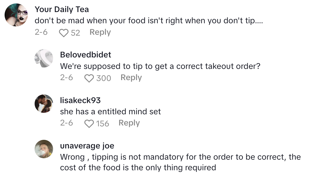He added, “Tipping in the United States is for service. Handing food to a person is not service. Again, if he was sitting at a table and the wait staff was bringing him the food, that’s different. But this is carry-out, come on.”