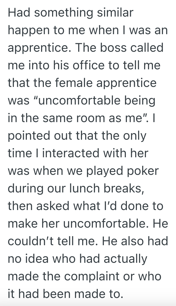 I explained I had been given feedback that indicated I caused others to feel uncomfortable.