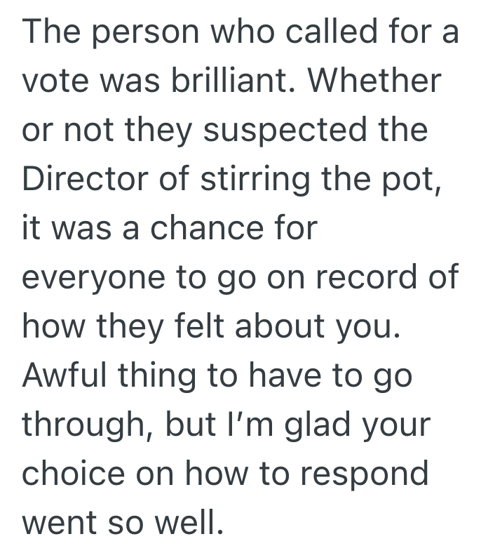 What was that Director’s problem? He should’ve left OP alone. His criticism is why the experiment wasn’t a success earlier.