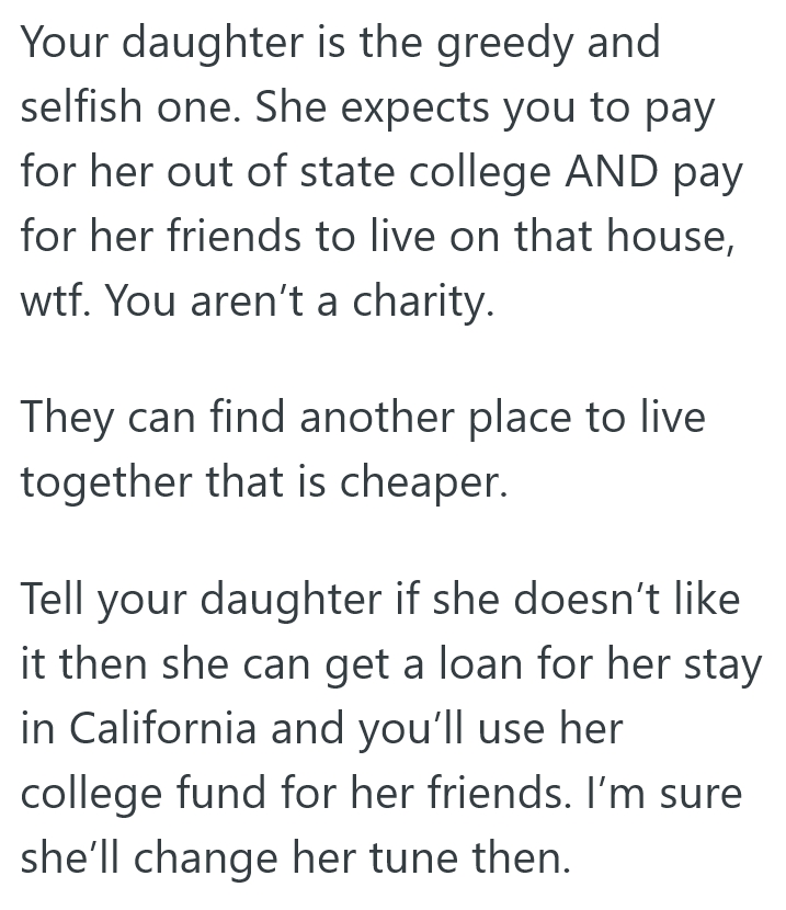 If I have to pay out-of-state tuition, room & board in California, I’m not going to also pay for the house here.