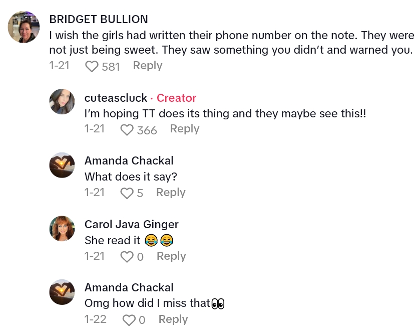 Enter TikTok user @cuteascluck with a story of a third date, and a mysterious note.