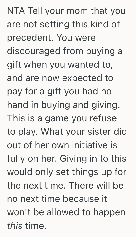 My mom sided with her, saying it was fine because she had claimed the gift was from both of us.