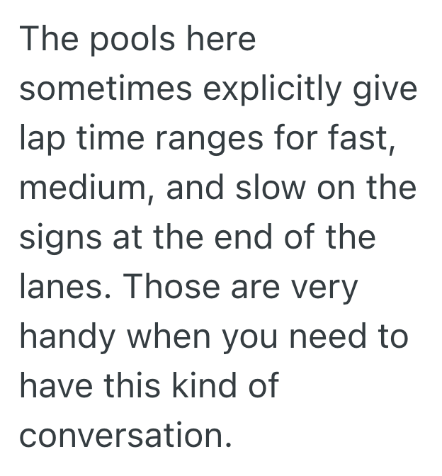 I hope that person learns their lesson and never aggressively tells anyone they are swimming too fast ever again.
