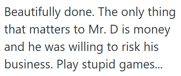 Great revenge right there, it was easy and didn’t cost this guy a thing while costing Mr. D a ton.