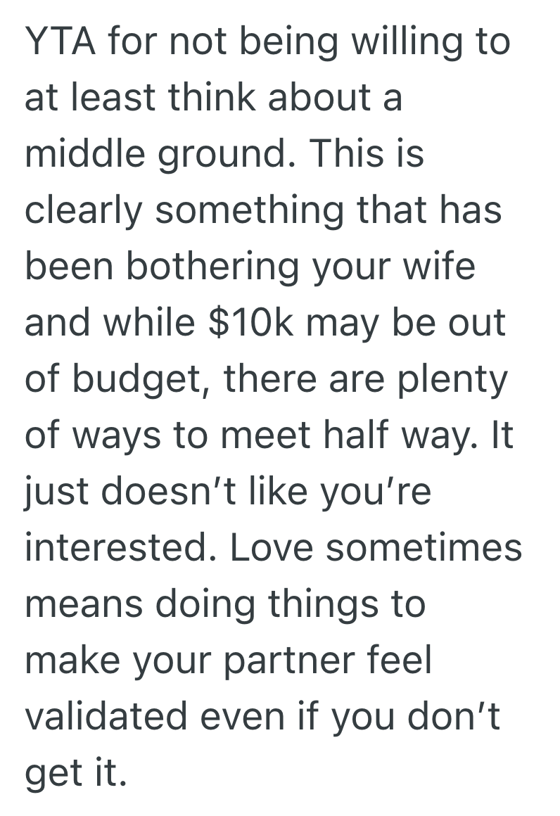My wife thinks after 10 years of marriage I should be willing to spend the money to let her redo it.