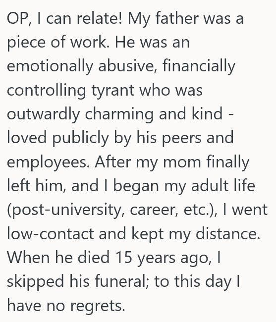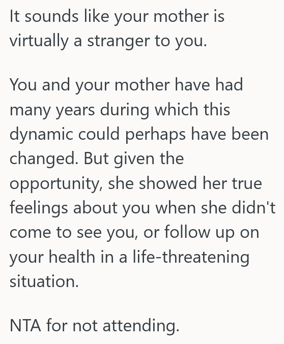Now that her mother has died, she’s wondering if it would be wrong to skip going to the funeral.