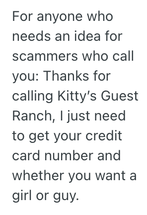 I think I’d report that number, but that does sound like an amusing way to mess with a scammer.