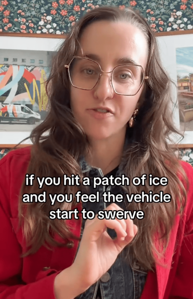 The woman who posted it is named Michelle and she gave viewers some advice about how to handle driving on black ice.