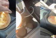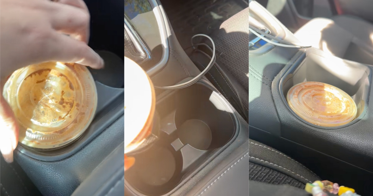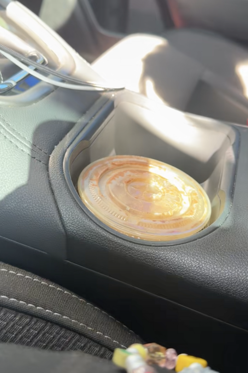 She placed her drink in the cup holder and yeah, it wasn’t a pretty sight.