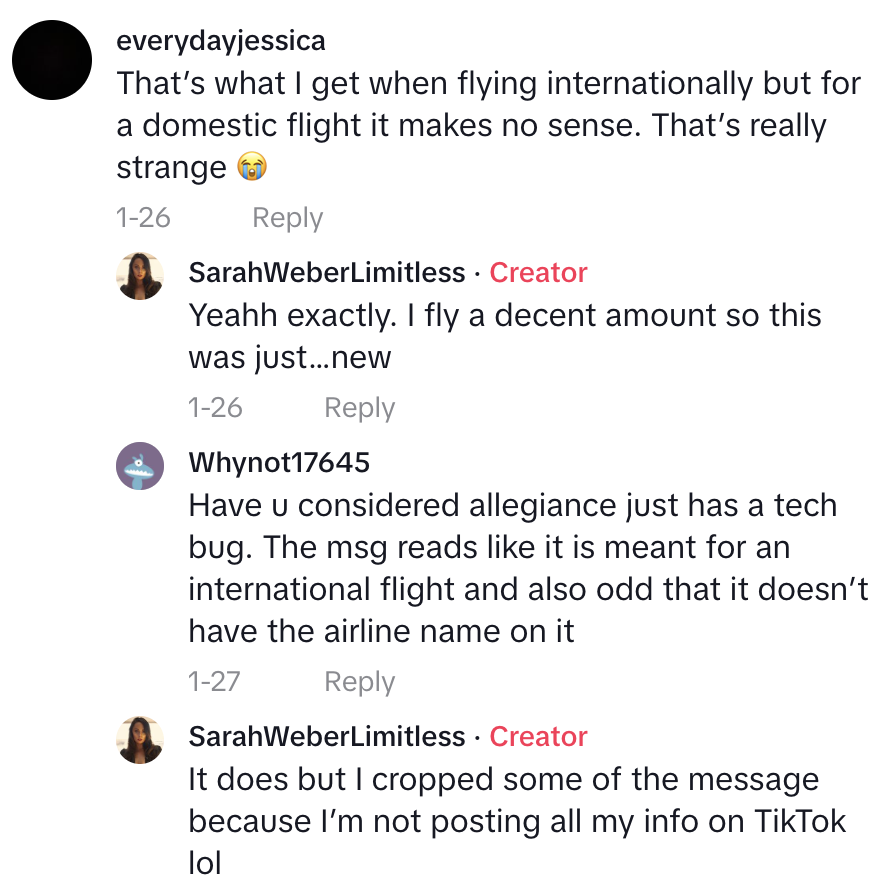 Sarah showed viewers a screenshot of an email she got, and it turns out she was asked to check in early because of Advanced Passenger Information, which is part of the TSA’s Secure Flight program.