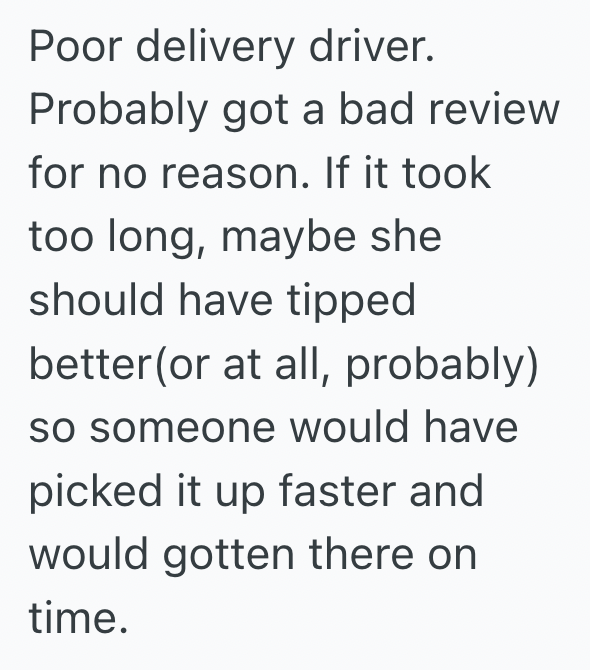 Unfortunately, this entitled woman probably took out her extra aggression on whoever really was delivering her food.