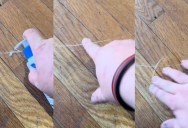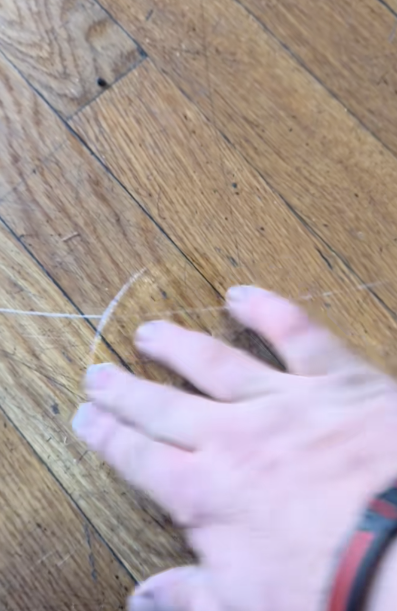 The video showed a scratched floor and the man behind the camera said, “Little life hack, if you’ve got all these scratches on the floor that won’t come off.”
