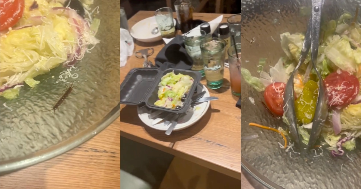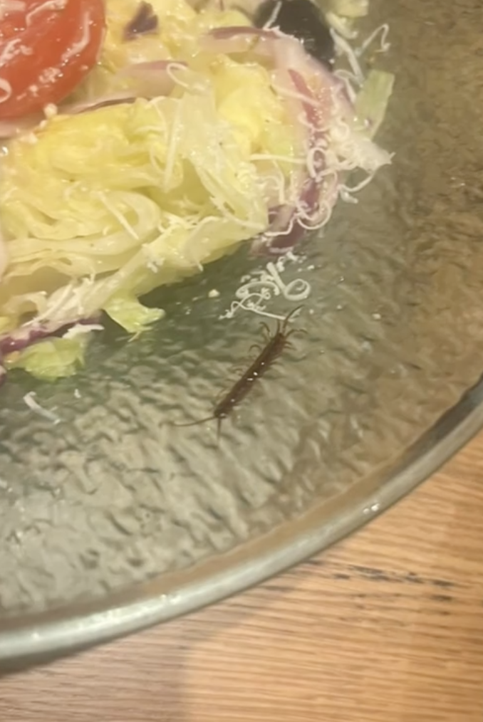 As the video shows, there was a CENTIPEDE in the salad that the group was served.