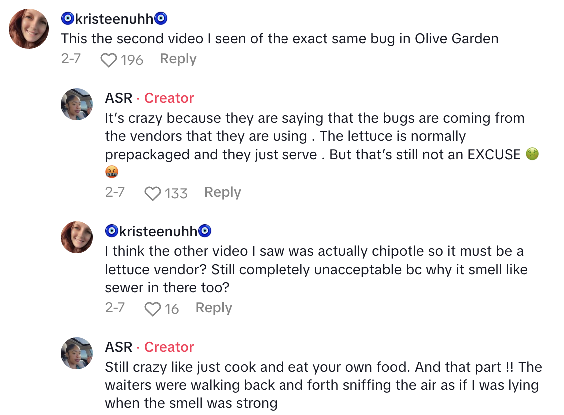 Tags: · bugs, customer service, insects, olive garden, restaurants, tiktok, top, video, viral