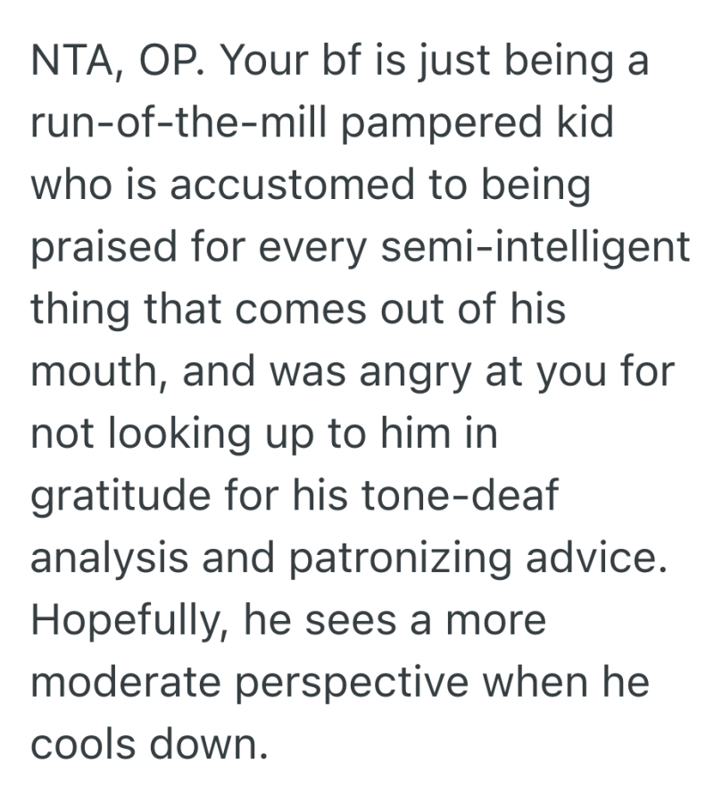 She didn’t think her boyfriend’s help was actually helpful.