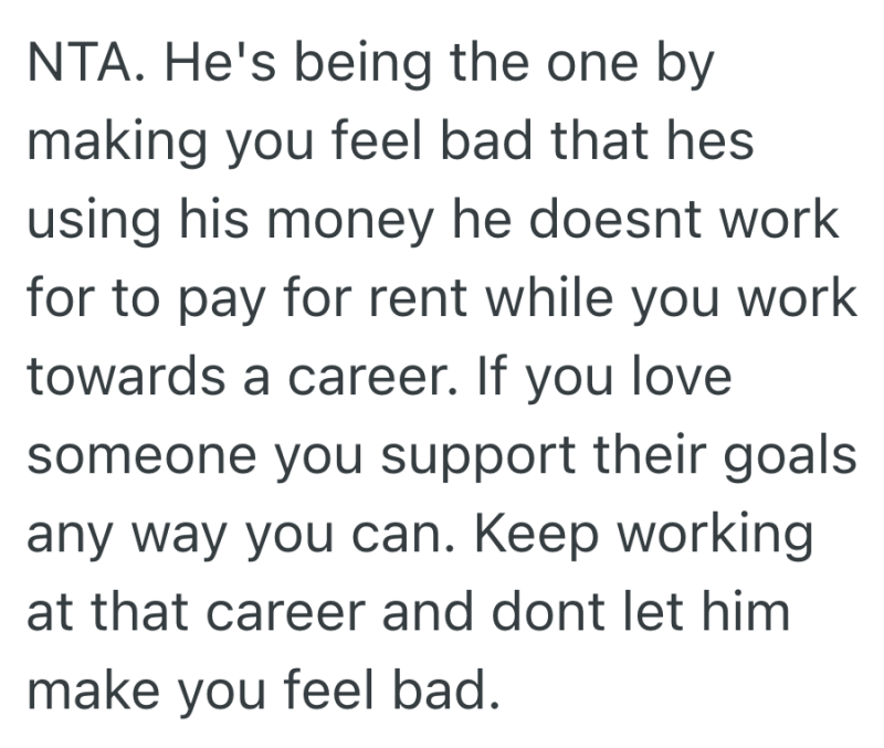 For context, he makes a ton of money, has a trust fund, a huge inheritance coming his way in a few years, and he receives from his parents yearly THREE TIMES the amount I am trying to survive on for the next 6 months.