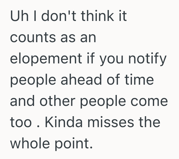 I told her we could plan a nice dinner after the elopement and do whatever she wanted then.