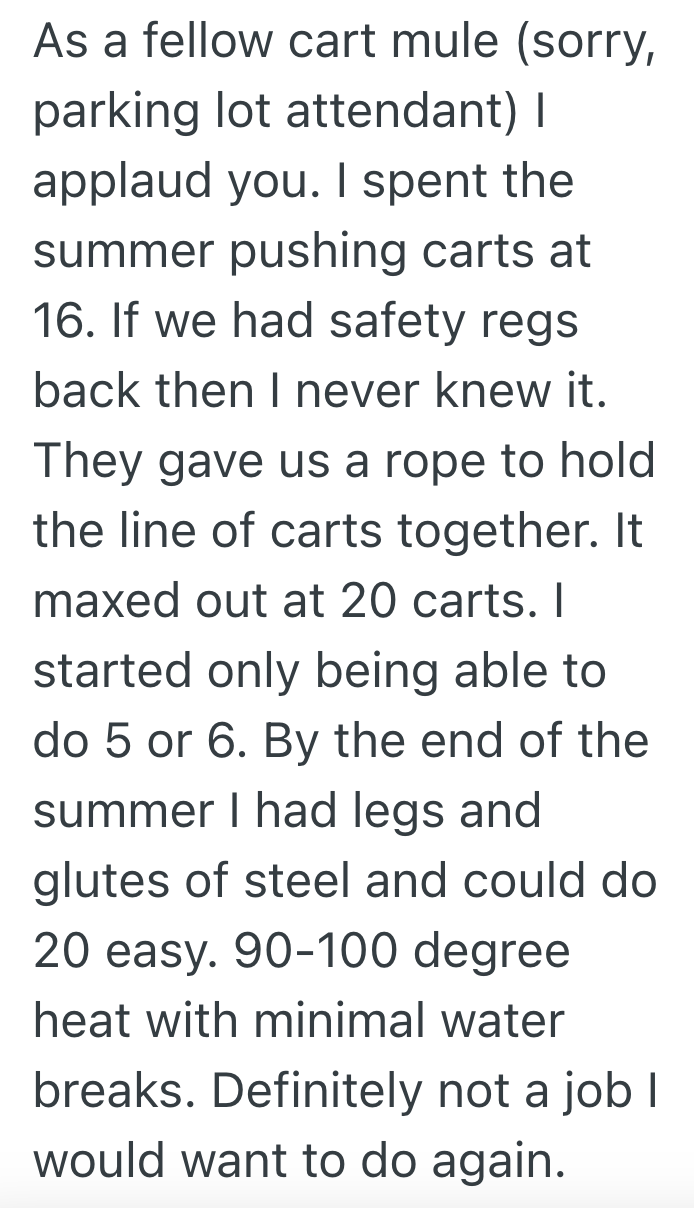 I’m going to feel more empathy anytime I see an employee push multiple carts into the store by themselves.