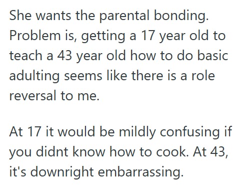 She told me I was still young and didn’t have my mom anymore (she died 4 years ago) so I shouldn’t dismiss the idea like that. But at the very least I could see where teaching her to cook would take us.