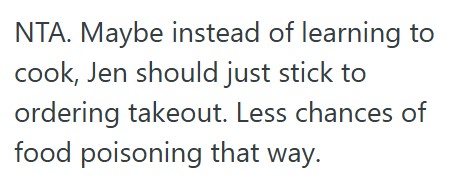His wife Jen (43F) doesn’t know how to cook. Or she knows what you’re meant to do but she can’t make anything edible or taste even okay.