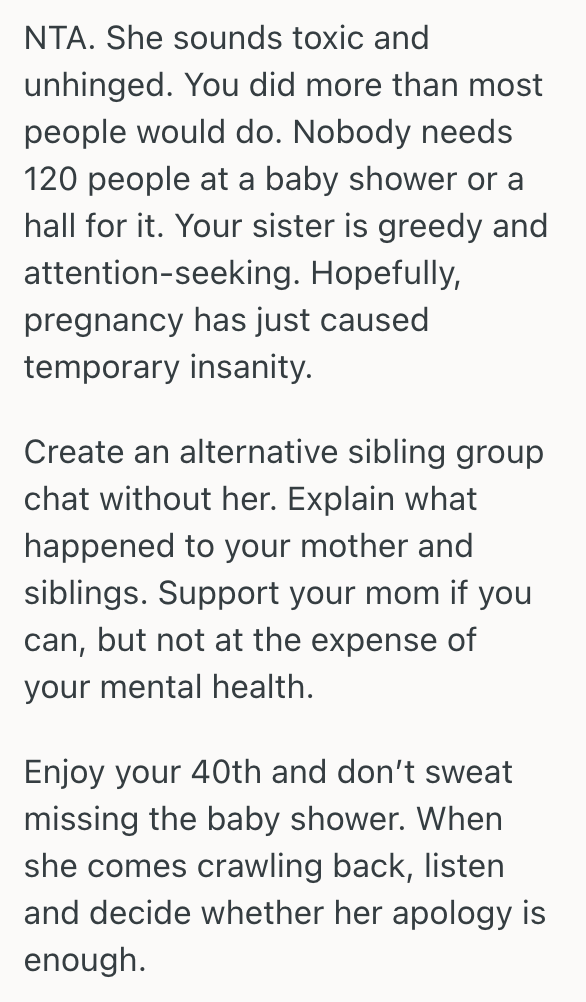 AITA for telling my pregnant sister that I wanted nothing more to do with her baby shower?