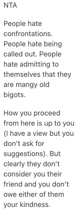 As a gay guy, I’ve experienced being iced-out of some of my straight friends’ lives and events in ways minor and pronounced, but this one has definitely been something that has had me thinking about my time and energy with people.