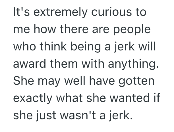 I hope that it was worth it for her staying until near close for over a month over that 15 minutes. I am petty and I have a lot of free time.